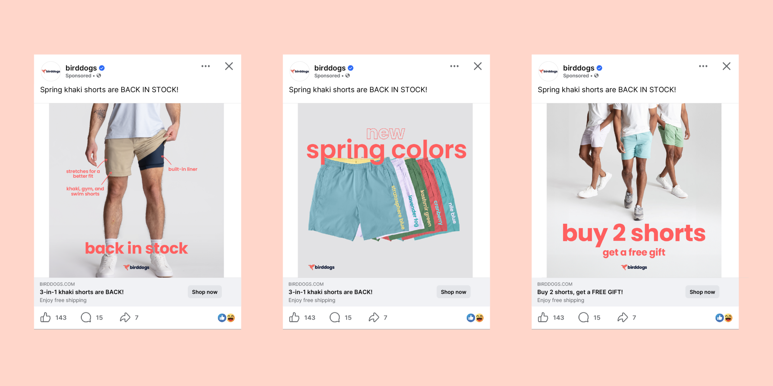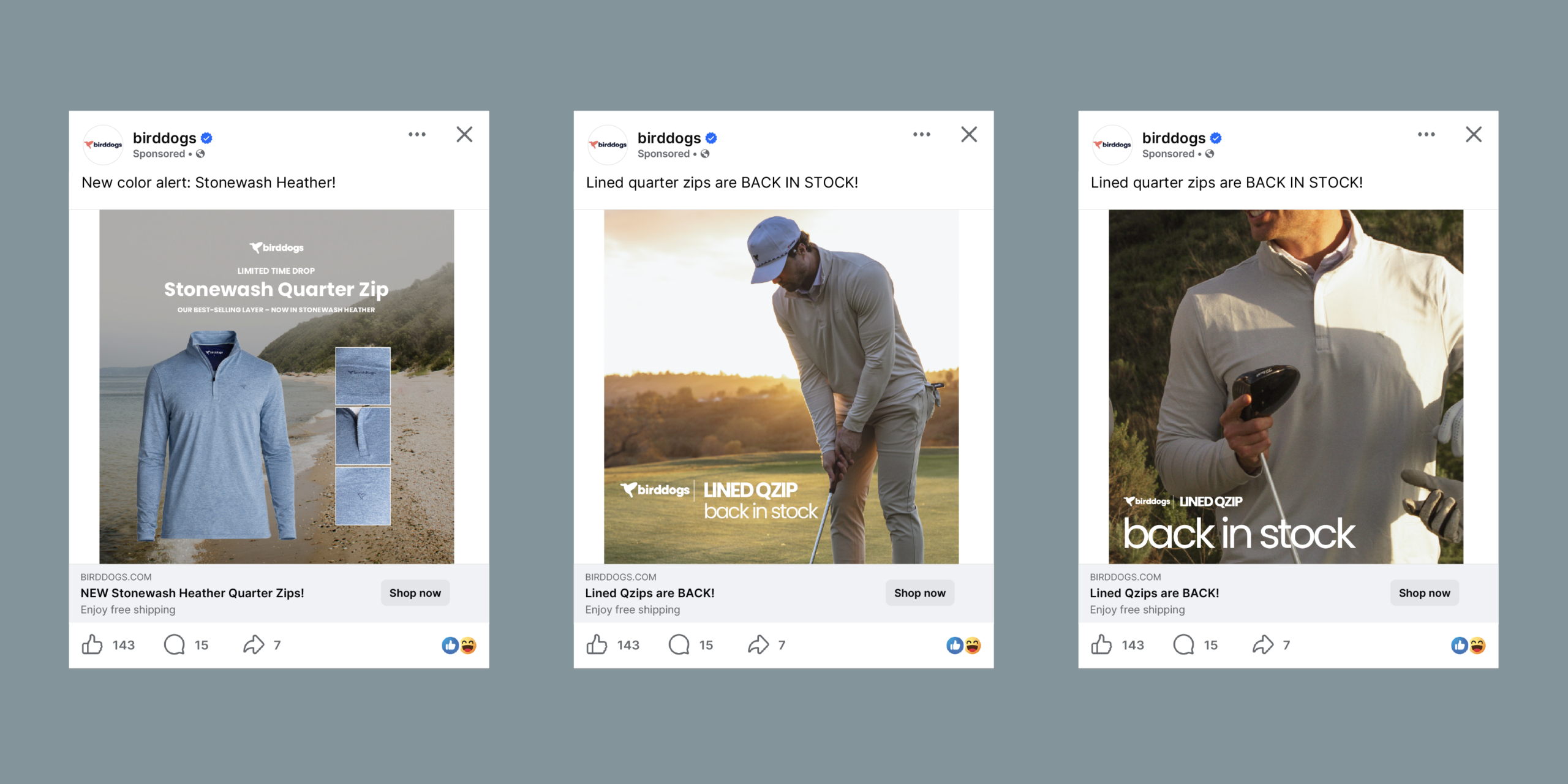 Lastly, the end cards with the product name and color as well as the call to action (“shop now”) drive engagement to the birddogs site.